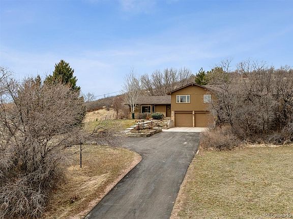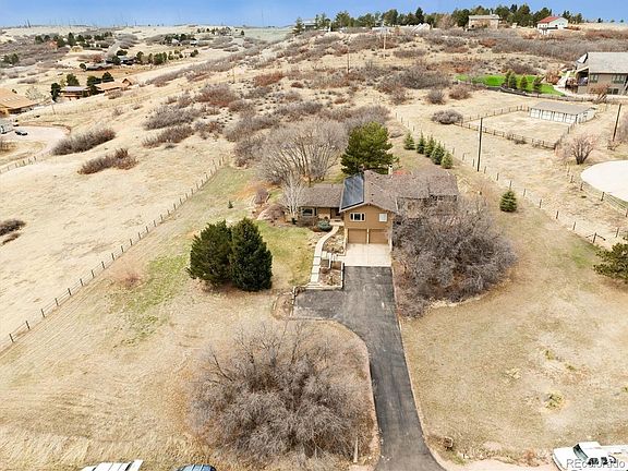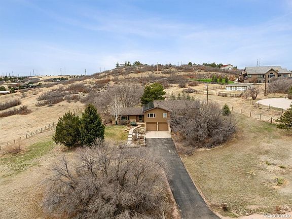 Wow! Location, Location - Located in Timeless Surrey Ridge - Close in Acreage Literally 5 Minutes from the Ridgegate Light Rail Station-10 Minutes from Park Meadows and 20 Minutes from DTC! Lots of Updating in this 4 Level Home, Carefully Positioned and Nestled on the Hillside, Surrounded by Lovely Mature Gardens *The Owners Have Loved and Cared for this Retreat for Well Over 30 Years*Don't Be Fooled by the Exterior as There are Plenty of Goodies on the Inside Including an "Inlaw Suite" Complete with Wet Bar, Two Bedrooms and a Full Bath. This Area is Perfect for Extended Family, Guests, Nanny, etc. The Updated Kitchen, Gorgeous Real Rock Wood Burning Fireplace, Newer Water Heater, Newer Pressure Tank, Newer Roof, and Fully Owned Solar Panels are Just a Few of the Many Features*Lots of Storage in the Finished Basement* Spacious Rooms Throughout*Light and Bright, the Sunshine Pours in through the Pella Windows*Enjoy the Many Outdoor Spaces Including the Covered Patio off the Kitchen, Private Deck off the Primary Suite and a Big Deck off the In-law Suite*Still Want More? There is Room for adding Your Own Outbuilding Which Could be an Additional Garage/Storage/Hobby or Perhaps Your Own Barn! Bring Your Horses and Enjoy Riding the Private Trails Plus Use of the Outdoor Riding Arena. There is So Much to Appreciate in This Home, it is a "Must See." Located on a Low Traffic Street with Lots of Daily Visits From the Local Wildlife*Paved County Maintained Roads, Natural Gas, Cable, - Don't Miss the Community Picnic Gathering Area Where Local Neighborhood Events are Held-Close to Everything!!