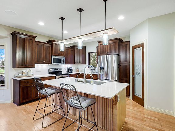 There's No Place Like Home! A truly exceptional property, unlike any other in the neighborhood! This stunning property showcases numerous custom builder upgrades, including exquisite hardwood floors, a captivating double-sided fireplace, and intricate woodwork throughout. Prep delicious meals in the custom gourmet kitchen. A chef's dream with gorgeous countertops, island seating and abundant prep space. Experience the epitome of organization in the laundry room. The lower level features a cozy family room with a custom designed shiplap wall complete with sconce lighting, perfect for movie nights. Indulge in the sauna's infrared and steam features for a spa-like retreat at home. The finished and heated garage space boasts a steel-lined interior and floor drain for added convenience. Outside, the beautiful exterior showcases Hardie Board siding and a composite deck, offering a serene and picturesque view on a tranquil dead-end road. This home is luxury living at its finest!
