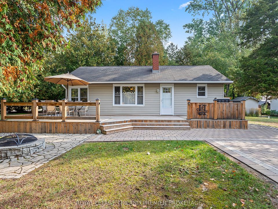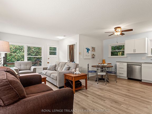 Escape to your own year-round retreat in the heart of beautiful Ipperwash! This updated cottage sits on a generous, private, tree-lined lot just steps from the beach, offering the perfect blend of relaxation and recreation. Renovated throughout in 2021/2022, the open-concept design features a stunning wood-burning fireplace, an eat-in kitchen with quartz countertops, stainless steel appliances, and a bright, airy flow thats perfect for gatherings. Enjoy peace of mind with modern updates including new flooring, kitchen, bathroom, windows, plumbing, and electrical (220 amp), plus the convenience of in-cottage laundry. Step outside and soak up the vacation lifestyle every day: lounge on the wrap-around deck, shoot hoops on the paver stone driveway, gather around the fire pit, or challenge friends to a game of horseshoes. A large outdoor storage shed adds practicality to the charm.Whether youre looking for a weekend getaway, a family retreat, or a full-time escape, this cottage offers the perfect backdrop for beachside living year-round.