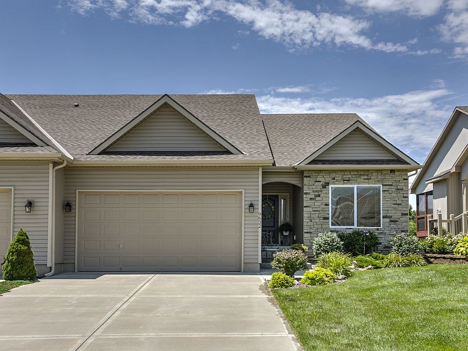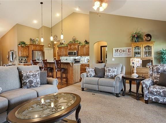 Hard to find Maintenance free Ranch Style - 1 level living that was custom Built. Open floor plan with vaulted ceilings, & the home backs to greenspace and wooded area. Enjoy your enclosed, covered deck almost year round. Enjoy your coffee in the morning as you watch deer saunter through the back yard. In the finished walk out basement there is a bedroom , full bathroom, and 23 x 21 living space. Dont miss seeing the 600 square feet of the basement that is unfinished for storage, hobbies, etc. The upgrades in the kitchen include quartz countertops, stainless steel appliances, slate backsplash, oversized sink, & a walk in pantry. The HOA takes care of the mowing and snow removal- there are 2 neighborhood pools with a splashpark, a lake to fish in, as well as walking trails. The Benson Place Neighborhood is convieniently located off of I-435 and 152 HWYs. Located minutes from shopping, dining, doctors offices and Liberty Hospital. This home is completely move in ready. Did I mention the great group of neighbors you will have? Home just went active at 5:45 pm on the 20th.