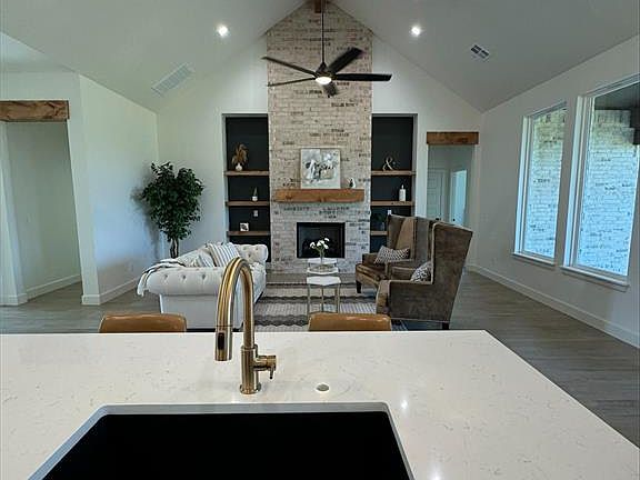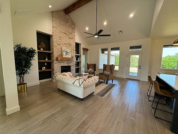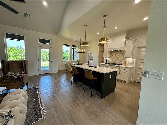 This gorgeous modern farmhouse boasts 4 bedrooms, 3 bathrooms and a private study/flex room. As you enter the kitchen, you will notice the the quartz countertops, stainless steel appliances, and cozy feel overlooking the open concept living space with cathedral ceiling and masonry fireplace. Nestled on one acre, this charming home includes landscape, sod, and irrigation package. Shops allowed. Cashion schools. You want to see this beautiful home!