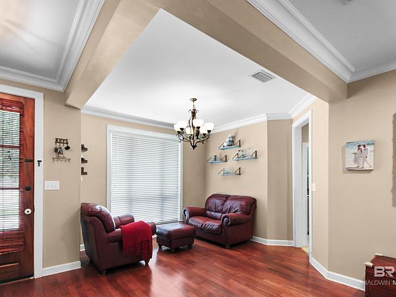 Tucked away in the heart of the inviting Chelcey Place community in Daphne, this beautifully designed home offers more than just a place to live—it offers a feeling of comfort, connection, and everyday ease. Located just minutes from I-10, schools, and all the conveniences of town, you’ll find yourself close to everything while still enjoying the quiet charm of a well-established neighborhood. From the moment you walk in, you’re greeted by rich crown molding, warm hardwood floors, and the soft glow of recessed lighting that together create a space that feels both refined and welcoming. The cozy gas fireplace in the living room invites you to slow down and savor the moment, whether you’re curled up with a good book or sharing laughs with loved ones. The split floor plan is thoughtfully laid out to provide privacy without sacrificing closeness, perfect for both quiet evenings and family gatherings. At the center of the home, the kitchen is a space where memories are meant to be made—granite countertops, stainless steel appliances, and an oversized pantry come together to inspire everything from casual breakfasts to festive dinners. When the day winds down, the master suite becomes your personal retreat, complete with a tray ceiling, luxurious whirlpool tub, separate shower, and dual walk-in closets that feel like a breath of fresh air. Outside, the backyard offers room to relax, play, or entertain under the open sky, while a 12’ x 10’ storage shed adds extra space for hobbies, tools, or treasures. This is more than just a house—it’s a place where your story begins, where each room is filled with potential, and every day feels like home. Buyer to verify all information during due diligence.