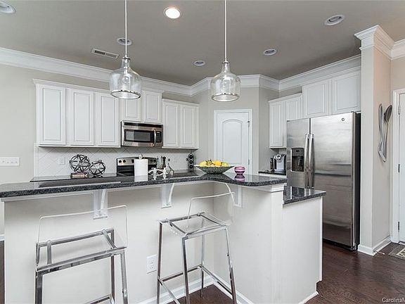 Like New Townhome in Christenbury! Desirable End Unit, Open Floorplan, Neutral Paint, Hardwoods on Main and More! Fantastic Kitchen Features Granite Countertops, Tile Backsplash, Stainless Steel Appliances, Extended Island with Breakfast Bar and Pendant Lighting Opens to Spacious Great Room with Coffered Ceiling. Oversized Owner Suite with Sitting Room and Private Bath. Great Location Close to Concord Mills and 485.