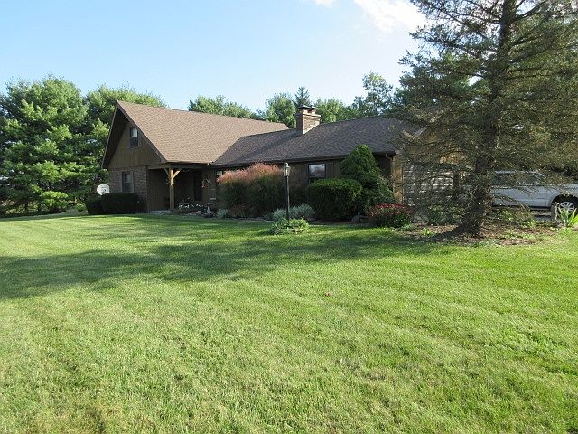 Absolutely gorgeous 7.5 acre site just minutes form schools and shopping. Situated on a private pond with a sandy beach. 4 bedrooms and 2.5 baths. Main level has an open floor plan between the kitchen and family room. Family room has a floor to ceiling fireplace. Tons of natural light. Kitchen has quartz counter tops and all appliances remain. Lower level has a family room with second fireplace and a wet bar. Fenced back yard has an oversized deck and a hot tub that remains. Finished off with a 32 x 40, floored outbuilding. The home is in great shape and ready for new owners!