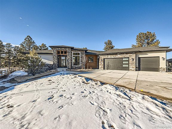 Hurry!… Hurry!… Hurry! Brand new to market and almost complete, this stunning creation by Tim Miller of Gladstone Custom Homes is the one you’ve been looking for! Situated on a private and serene .60 acre homesite backing permanent open space, this ranch walkout estate will exceed your expectations! This open and “see-through“ property’s main level features: a generous great room with high ceilings and fireplace; executive study; elegant half bath; guest suite with en-suite; primary bedroom with sumptuous five piece bath; beautiful chef’s kitchen with top grade appliance package-- adjacent to the functional and elegant dining nook, and access to the large deck at the rear of the home overlooking the tree’d open space! The finished walkout basement features: huge family room/game room with wet bar; two additional bedrooms…each with their own bath; additional guest bath; exercise room/craft room, and ample storage and/or room for a future expansion! Stunning curb appeal, a dynamic homesite (with that quintessential “Colorado feel” which is so sought after in the Timbers), and a full landscaping package included in the sales price make this home a must see! Home is in finishing stages with completion anticipated for fall of 2023! Show it soon… You won’t be disappointed!
