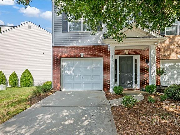 Fabulous 4BR/2.5BA townhome in desirable Cabarrus County School district (Odell/Harris Road/Cox Mill). Walkable to two of the three schools! End unit with dorable covered porch entry welcomes you home. First floor boasts a wide-access hallway w/storage closet that leads to a BR w/it's own full BA & single-car garage. On the second floor, you will find a very graciously size FAM RM w/gas-log FP, dining area (with adjacent breakfast bar), large kitchen w/eat-in breakfast area, convenient laundry room (including cabinets) & half bath. The kitchen features SS appliances (dishwasher new in 2021). Refrigerator conveys! Spacious deck w/double sliding doors for endless entertainment options. Third floor features large primary suite w/walk-in closet & ensuite w/double vanities & garden tub. Two addl' BRs round out the third floor. Updated light fixtures, ceilings fans & hardware. Neutral paint throughout & with a little bit of tweaking, you can make this the home of your dreams! Welcome Home!!