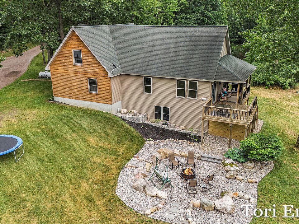 Home has efficient geothermal heat pump. Attached 2-stall garage. Outside you'll find a nice fire-pit area, large yard and dock at the lake. Not far from Greenville or Sheridan. This is a must see! Schedule your private showing today!