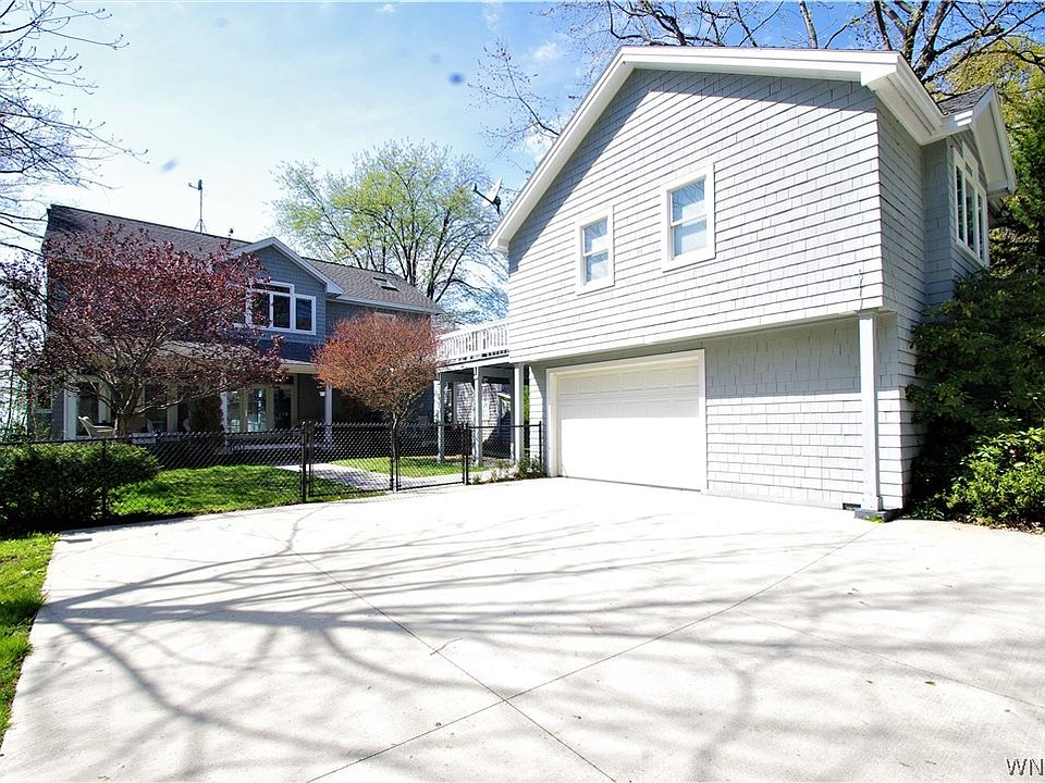 Stunning lakefront home and separate carriage house-guest/in-law suite overlooks spectacular sunsets, sandy beach and water view from every room. Center entrance foyer into the central area of this gorgeous all white interior home. Liv rm w/10 ft ceiling & wbfp w/gas start. French drs to fam/media rm with home office built-in storage cabinet/built in glass shelves. Slg drs in liv rm & fam/media rm installed in 2012 to stamped concrete patio (2016). Custom kit features island, granite counter top, pantry, glass front cabinetry, jenn-air stove, sub-zero ref & french dr to covered porch. 16x9 sitting area (sky light) 2 master suites overlooking water w/covered decks/dual closets/ceramic tile mst baths w/bidet. 1st fl full bath w/stone pedestal sink. Hardwood fls, recessed lights thru-out, sky lights, cathedral ceilings, niches for statues, some-crown molding, ceiling fans, pella windows, 8ft base, 2 elec boxes, glass block windows, central vac, central air, furnace 2019, front porch, alarm system & entertainment system upgraded 2016, ext paint 2013, walkways/ concrete driveway 2016. The sea wall was constructed in 2021. One bdrm guest house w/water view, galley kitchen, lg deck.