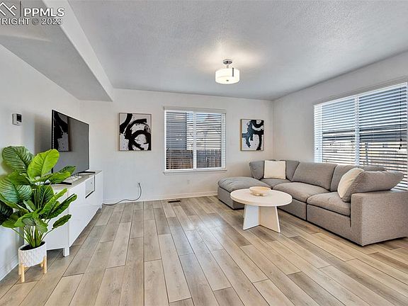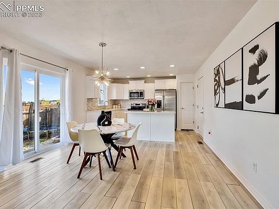 Welcome to this updated property in the highly sought-after Buffalo Crossing neighborhood within Lorson Ranch here in Colorado Springs. This residence offers 3 bedrooms, 3 bathrooms, a 2-car garage, and measures just under 1700 sq ft. As you enter, you will be greeted by an open floor plan flooded with natural light. The numerous modern updates, including fresh paint, LVP flooring, and trim, are impossible to overlook. The main level provides a functional flow for entertaining or simply enjoying a relaxing time. The kitchen has been recently updated with freshly painted cabinets and beautiful white granite countertops, giving the home a new modern feel. Moreover, there is air conditioning to keep you cool during those hot summer days. As you ascend to the upper level, you will be impressed by the generously sized primary bedroom, complete with a large walk-in closet and an impressive ensuite bathroom. The secondary bedrooms are also spacious and can be utilized as traditional bedrooms or office spaces. Additionally, the conveniently located laundry room is situated on the upper level. Furthermore, this home boasts a backyard that opens up to expansive open space, providing ample room for entertaining with a fire pit and a pergola that will remain with the property. And did I mention the breathtaking mountain view from the backyard? This community offers walking trails, numerous parks, and is in close proximity to Fort Carson, Peterson Air Force Base, Schriever Air Force Base, and the new Amazon centers. Don't miss the opportunity to own this gorgeous home - schedule your showing today!