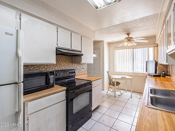 Adorable duplex in beautiful Peoria community. Wonderful location in Sun Air Estates w/ lovely community green belt, extra parking & Rec Center / Pool right next door. Mature shade tree in front adds to curb appeal & a new roof was just installed in 2021. The interior, however, needs some TLC & the price reflects the necessary clean out & updates. It's a perfect home to make your own, fix & flip or use as rental income. New paint, flooring & cabs, etc, needed & there is a heavy cigarette smoke odor which would require attention - BUT check the comps... newly remodeled homes with this floorplan are closing in the MID 200's & ABOVE. 55+ age restricted community but w/o the Sun City cap fee & 'higher' HOAs. This home is nestled in a much-desired, beautiful community & priced for opportunity.