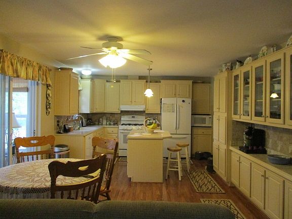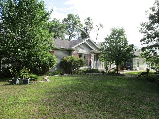 AWESOMELY GORGOUS!!! 3/4+BR,3BA, 1848SF, 28'x36' attached 2+ garage finished & insulated w side heated workshop 12'x12', central A/C, 3 season room plumbed for heat 11'x16' carpet, foyer 6'x7' vinyl, hallway 19'x3' carpet, 1/2 bath 2'7x6' vinyl, and shed 8'x14'. Features; DBL lot, Wood grain vinyl exterior, Corian counter tops, master bathroom has dbl sinks, linen closet, garden tub, shower and walkin closet. Appliances; Refrigerator, Gas range/oven, kitchen island with two swivel bar stools, washer/dryer gas, and generator hook up. Patio pavers off 3 season room and behind garage 5'x8'. Includes firepit, swing, patio pavers, and the 4th BR is used as den/office. Manufactored home built 2003 with 6" walls, .67acres sitting on two large lots nestled in the woods, partly fenced in.