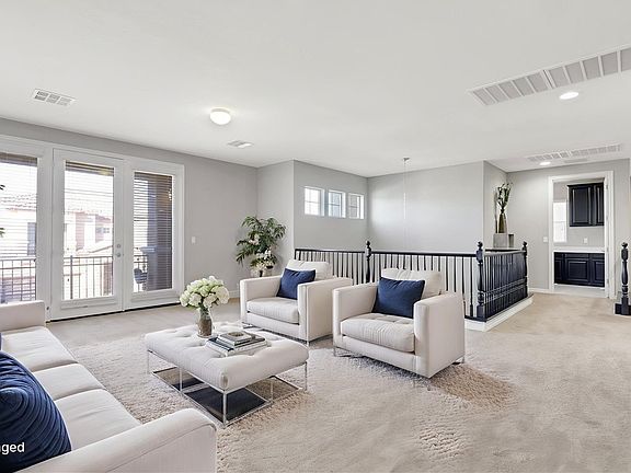 Experience luxury living at its finest in this better-than-new 2017-built masterpiece, located in the prestigious gated subdivision in 89149 zip code. This elegant 5-bedroom, 4-bath residence offers 4,581 sq ft of living space designed for comfort and sophistication. Step through the impressive two-story foyer with soaring 10’ ceilings and French doors leading to a private den. The gourmet kitchen is a chef’s dream, featuring an island cooktop, statement range hood, Sub-Zero refrigerator, oversized walk-in pantry, and a mudroom off the 3-car garage. The grand primary suite includes a spa-inspired bath with dual vanities, soaking tub, private office, & balcony access. A downstairs bedroom & bath provide the perfect setup for guests or multigenerational living. The upstairs loft with wet bar and mini fridge opens to a balcony ideal for entertaining. Enjoy resort-style outdoor living with a full kitchen, fire pit, water feature, dual gazebos with fans, turf, and lush mature landscaping.