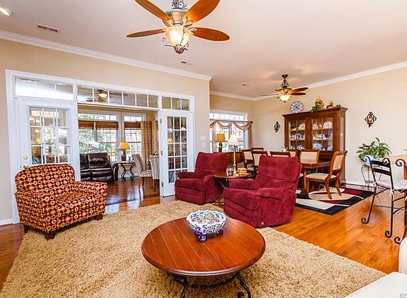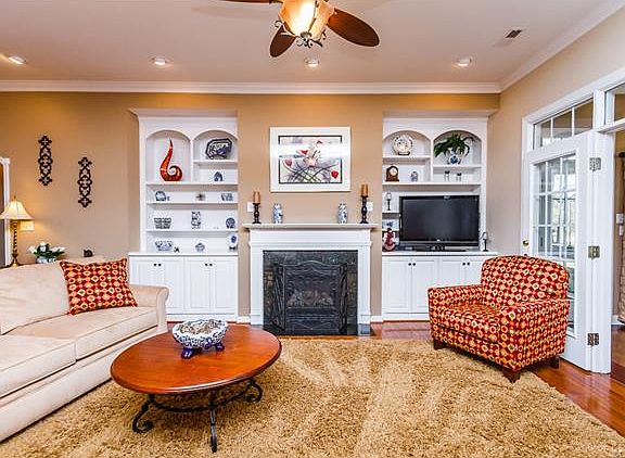 Gorgeous brick & vinyl transitional rancher with 4 bedrooms, 2 full baths, 2,466 square feet in Collington on the 6th hole of the Burkedale golf course. The exterior offers 2-car attached garage, paved driveway, whole yard irrigation system, large rear patio and huge rear yard. The interior boasts an open floor plan with hardwood flooring throughout main living areas. The spacious family room features gas fireplace, built-in cabinets, crown molding, recessed lighting and opens up to formal dining room with ceiling fan & crown molding and eat-in kitchen with tile countertops, crown molding, recessed lighting, island with breakfast bar, custom cabinets and two pantry's. The light & bright Florida room offers crown molding, ceiling fan, French doors and door to rear patio. The master suite includes vaulted ceiling, ceiling fan, walk-in closet and en suite full bath with tile flooring, double vanity sink, soaking tub and separate tile shower. There are three additional bedrooms, all of them are spacious and have carpet, ceiling fans & large closets. There is also tons of additional storage space in the walk-in attic. This beautiful home has been lovingly maintained & is move-in ready!