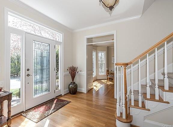 Welcome home to 9236 Callis Court, a stately 4 bedroom home located in the desirable Harrisburg, North Carolina neighborhood of Bradford Park... Where you find winding streets, rolling hills, large shade trees, plus a community pool and tennis courts! This all brick home has gleaming hardwood floors, a gourmet chef's kitchen, a beautiful master suite, bonus room, plus a hot tub, fenced in yard, AND in-ground irrigation! This home offers living at its finest! Call us today to see it person - 704-750-5417. The exterior of 9636 Callis Court is impressive! It sits on a spacious 0.49 acre cul-de-sac lot that has large shade trees and feels serene and private - there are no neighbors on one side or in the back, just woods! It has a two car sideload garage and an all brick exterior. The yard and landscaping is lush and green. Once inside, the bright and open foyer welcomes you with gleaming hardwoods, immaculate neutral wall paint, and crown moulding. This home is full of light! To the left of the entrance is the home’s dining room. There are continued hardwoods, extensive crown moulding, as well as an octagon shaped tray ceiling, a large bay window, and designer chandelier. Across the foyer is the home's living room/office which boasts plush carpeting, crown moulding, another large bay window, and double French door access to the home's great room. The cozy great room exudes charm! Its many windows look out to the home's back deck and expansive backyard, plus this room has an all brick, gas log fireplace with bookcases built in on each side, a ceiling fan/light, and plush carpeting. The chef's kitchen offers many beautiful wooden cabinets plus a tasteful tile backsplash. The granite countertops sparkle! Additional features include stainless steel appliances, stained glass style pendant lights, recessed lighting, and a great island with space for bar stools. There is also a breakfast area in the kitchen which overlooks the spacious backyard. Head upstairs to the 2nd floor to view the master suite and secondary bedrooms. The three bedrooms have great closet space, ceiling fan/lights, and plush carpeting. One secondary bedroom has access to the master! (What a great place for a nursery.) The secondary bath has ceramic tile flooring, a dual sink vanity, and a shower/tub. The master suite is pristine and possesses a fabulous tray ceiling. It's immaculate bathroom boasts ceramic tile flooring with a vintage look, an oversized seamless glass shower, deep soaking tub, and a dual sink vanity! Don't forget this home has a fantastic bonus room! Head outdoors to take a look at the fabulous backyard that is completely fenced, possesses in-ground irrigation, and has a large deck with hot tub! The lot is nearly surrounded by privately owned property and mature shade trees which offer plenty of privacy. This amazing home will sell quickly, do not hesitate to call for a private showing - 704-750-5417.