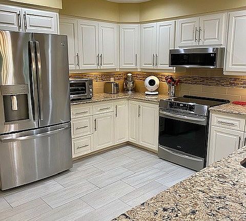 You do not want to miss this Rainbow Springs Country Club totally remodeled home! MOVE-IN READY spacious 2/2 home with over 2,000 square feet of living space, boasting open floor plan with an added bonus of an enclosed air conditioned lanai, and oversized two car garage with finished floor. Porcelain tile floor throughout and newly remodeled kitchen featuring Cambria quartz counters and all new stainless-steel appliances. Completely remodeled bathrooms featuring quartz countertops. 2019 new Pella Low-E windows installed throughout. Trane XR air handler and heat pump as well as new air ducts installed in 2017 with 10-year transferable warranty. All new designer window treatments and well- appointed lighting throughout. Eight-camera hardwired 4K video security and monitoring system. Low HOA fees of only $230 per year includes private access to the Rainbow River as well as the newly renovated clubhouse including the swimming pool, tennis and pickleball courts, bocce ball, billiards room, gym, restaurant/bar and lots of interest groups to join. This gem of a house will not last long so make an appointment today!