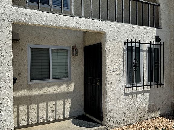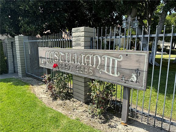 This ready to move in Townhome is located in the rear of the gated Castillian lll community. Nobody above and nobody below you! This 2 bedroom unit has wood floors downstairs and carpet upstairs. The kitchen features built in cabinets, dishwasher, gas stove/oven and built in microwave. Granite counters and recessed lighting accent the kitchen and breakfast counter. The living room has rich wood flooring and built in custom cabinets. The corner gas fireplace and mantle make a great focal point. The bedrooms are upstairs and the primary bedroom has a vanity and it's own entrance to bathroom. There are built in cabinets and a large closet. The second bedroom has a large closet and custom wall shelving. The patio is private and covered to keep out the elements and direct access to large 2 car garage. The garage has several cabinets and shelving for storage along with the washer and dryer hookups and split dutch door so you can see your guests arrive. This home has Central air and heat and a tankless water heater. Enjoy the landscaped grounds and the crystal clear pool. This is a great starter home with schools and shopping nearby.