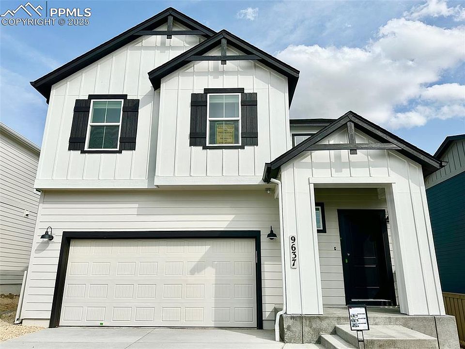 Ready in June. Hillside 2-story plan in Homestead at Sterling Ranch. 4 bedrooms, 3.5 baths, 2 car garage home. Farmhouse style exterior. Kitchen features Shaker-style cabinets in a pecan finish, crisp Frost White quartz countertops, island, pantry, and stainless steel appliances including a gas range and refrigerator. The upper level hosts a primary bedroom separated from the two secondary bedrooms by a loft to create a serene, private space. The primary bathroom features a large shower with seat, vanity with double sinks, walk-in closet and separate linen closet. The finished basement includes 1' taller ceilings and hosts a rec room, bedroom and full bath. Home comes equipped with a smart home package, radon mitigation system, and air conditioning. Exterior living space includes a patio easily accessed from the dining area and includes a gas line suitable for a grill. Seller incentives available. Includes full yard landscaping.
