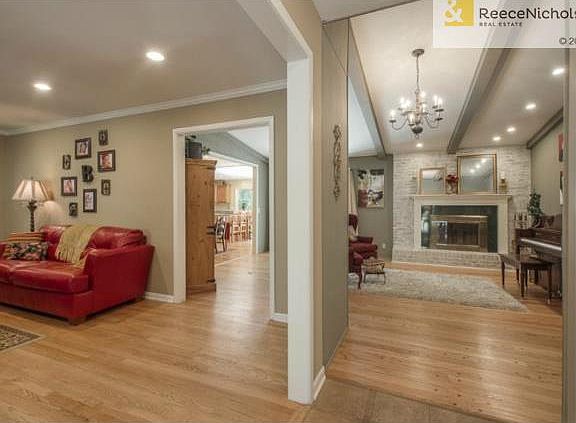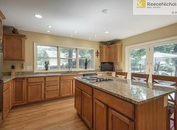Style meets substance in this expanded ranch. 3 main level living spaces with lots of light and main level laundry room. Big granite kitchen w/center island, Dacor double ovens, lots of custom cabinets. Vaulted great room w/frplc is open to the kitchen and has French doors leading to the paver patio. Hardwds, recessed lighting. Granite baths, jetted tub. Sprinkler system and fenced yard on cul-de-sac corner lot. Minutes to Ranchmart shops, movies, restaurants and grocery. A+ schools: Brookwood and Cure of Ars.