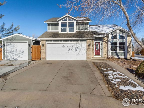 Immaculately remodeled home conveniently located in a highly desirable cul-de-sac location. Enjoy an abundance of natural light in this south facing two story with upgraded windows. Recently added detached third car garage highlights a large, fenced corner lot. Eat in kitchen with stylish concrete epoxied counters, massive pantry, and garden ledge window. Open and spacious with vaulted ceilings. Expansive primary bedroom with remodeled en suite. Newly finished basement includes a cozy guest bedroom with egress window, family room and bathroom. Covered porch highlights a relaxing outdoor living space with a "smart" sprinkler system and storage shed. Close to trails, parks, shopping, and the City Pool. No HOA or Metro Tax!