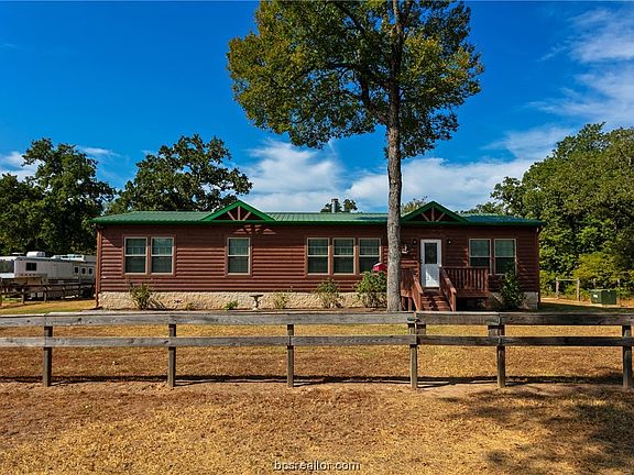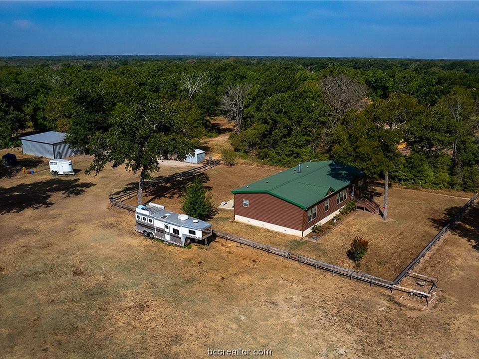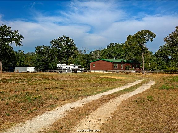Escape to peaceful country living just under 7-acre that offers the perfect blend of tranquility and convenience. A well-maintained home is just 10 minutes away from town and a mere 15-minute drive to Texas A&M. Step inside this well-maintained home feel immediately at ease. The home features a durable 10-year metal roof and has been freshly painted, enhancing its charm. Spend your evenings on the front porch, soaking in the natural beauty that surrounds you. Inside, 1800sf of interior living, large windows are adorned with 2-inch faux blinds. On cooler days, gather around the wood-burning fireplace in the spacious living area, surrounded by nicely trimmed sheet-rocked walls. The kitchen is truly the heart of this home, with a large granite-topped island, stainless appliances, and ample storage for all your culinary needs. Whether you're cooking family dinners or hosting guests, this kitchen is sure to impress. The split floor plan ensures privacy, with the primary bedroom tucked away from other bedrooms, a garden tub for relaxation, a separate shower for refreshing mornings, and a spacious walk-in closet. For those who cherish the outdoors, there's a 2-stall barn with a tack room, ideal for housing horses or other animals, extra workshop/storage shed equipped with electrical connections for DIY projects. Whether you're looking to escape the hustle and bustle, savor the beauty of nature, or simply enjoy the peace and quiet, this property has it all. Call for a showing today!