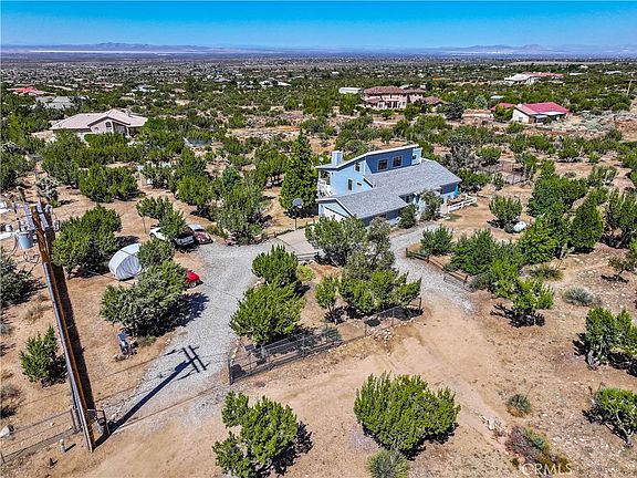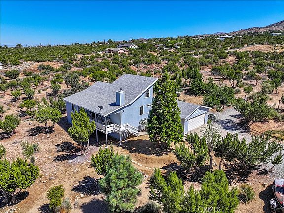 SOUTH SIDE STUNNER ON 2+ ACRES WITH VIEWS GALORE TO THE NORTH AND SOUTH!! THIS AWESOME PROPERTY IS BEING OFFERED FOR SALE FOR THE FIRST TIME EVER... Featuring 3 bedrooms, 2 full bathrooms and 2 car garage and 1843 square feet of living space, this is a must see!! Floor plan offers 3 bedrooms on main level, including the primary suite. A large living room serves up awesome views to the Mojave Desert floor and mountains. along with a brand new wood burning stove, newer bamboo flooring and recently painted interior. 2 nicely appointed bedrooms on the north east side of the home also feature newer flooring and paint and ample closet space. Down a couple of stairs to the dining room and open kitchen, with newer plank flooring, baseboard and access to the rear yard with sitting area, veggie garden and south side driveway. Upstairs, an awesome loft area is prefect for a home office, flex space or showing off your favorite collectibles. Both bathrooms feature newer fixtures and paint as well! Outside, your neatly landscaped lot offers natural chaparral like Junipers and sage (all well cared for, trimmed up and healthy!), along with multiple drip fed berry bushes and fruit trees. New Tuff Shed, dedicated veggie garden, and bridge allow for easy watering and access. Other upgrades and additions include newer septic tank, hot water heater, window treatments, washer and dryer, central cooling and heating system in 2021, carpet in loft and sooo much more!! This home has it all, south side of 138 location, turn key conditions and views that will never go away!! Come check it our for yourself in Sunny Pinon Hills!
