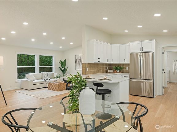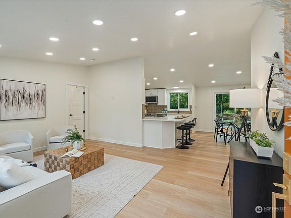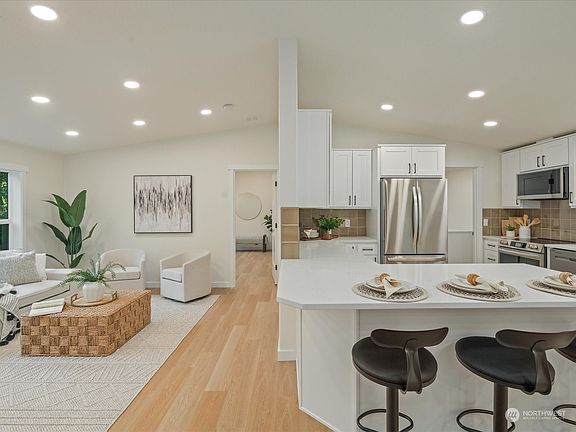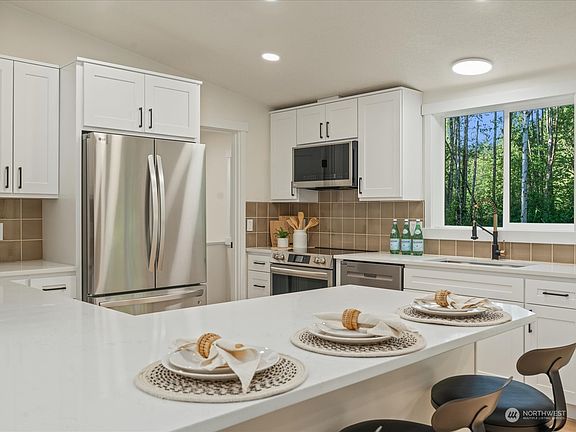 Introducing a stunning 5-acre secluded retreat in Blaine! Immaculately remodeled with meticulous attention to detail, this property boasts all-new cabinetry, quartz countertops, and lavish tile. Vaulted ceilings enhance the sense of space, while the large master bedroom offers his and her sinks and a walk-in closet. Enjoy one-level living, whether you're cozying up by the wood-burning stove or entertaining guests in your newly hydro-seeded lot. Luxury abounds with fully tiled baths featuring exquisite gold and matte black hardware, stunning interior and exterior paint, a brand-new roof, and freshly finished decks. Explore the just shy 5-acre lot with roundabout parking and a sizeable shed. Come check out this luxurious hideaway in Blaine!
