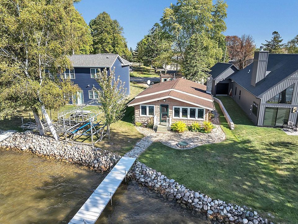 Desired waterfront on crystal-clear Kelly Lake, just 45 min. from Green Bay. Rock landscaped shoreline, sand bottom lake & 96-foot dock to enjoy water sports, swimming & fishing. Flagstone patio overlooks lake. Inside, the open-concept design showcases a stunning kitchen equipped w/stainless-steel appliances, Pickled Oak cabinets & Silestone counters. Living room has floor-to-ceiling fieldstone fireplace, exposed beam vaulted ceiling & French doors to bedrooms. Open to 4-season room w/wall of windows providing breathtaking water views from main living spaces. Other conveniences include laundry area w/stackable washer & dryer, bath w/walk-in shower & jetted tub and 12x16 building w/rustic half bath, fish cleaning area & workshop. Seller is willing to consider buyer concessions in offers.