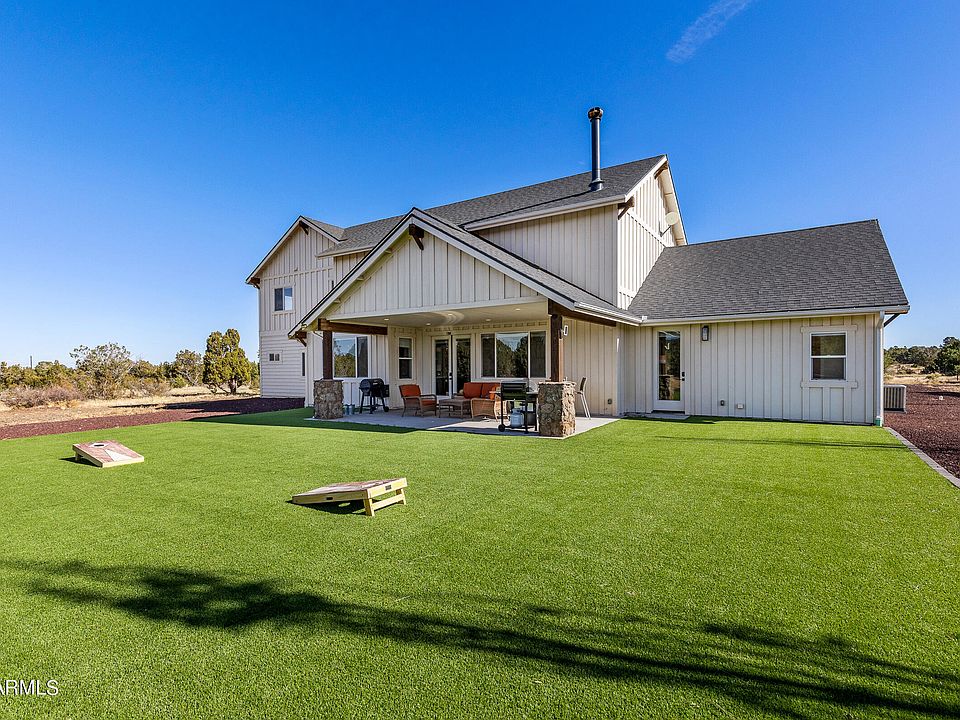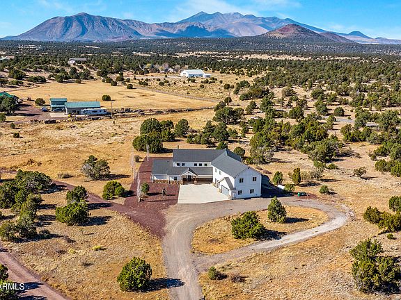 This serene, NEWER Build Farmhouse mountain home with NO HOA has a CLEAN Inspection Report & offers instant enjoyment as it is being sold furnished and equipped with 5 off road vehicles too! Picturesque Peak Views are unmatched and views abound thru nearly every window from inside too (see video). WELCOME TO CIERVO TRAIL...''ciervo'' in English translates to ''deer'' and this home is a place to enjoy time with those who are dear as an occasional deer passes by! Conveniently located near the I-40, you can get to town in minutes and there are National Forest trails seconds away. Truly the best of both worlds- convenience and country living too! The floor plan is open with the living room, dining and kitchen central to everyone's access with a walk in pantry that is bound to impress! Downstairs there are three bedrooms including the primary and two bedrooms which share a bathroom....and don't worry there's a separate powder room downstairs for all to use too. Downstairs and upstairs each have their own washer and dryer, making the home perfect not only for families but potentially multiple families to cohabitate the home and/or multigenerational families or even just guests. Upstairs there is a comfy loft area for your relaxation. Additionally, there's a bonus room which can be used as a bedroom too if you prefer and two other bedrooms which share a bathroom. Would make a great Airbnb too!