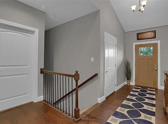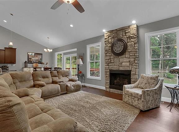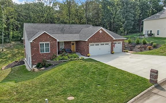 Remarkable & setting is waiting in Franklin County Country Club Estates. This 1688 square feet ranch home has upgrades & finishes like wood floors, granite kitchen tops, 9 ft base ceilings, 8'10" basement pour, vaulted ceilings, plantation shutters, gas fireplace (adjustable flame) w/ stone hearth & much more you will be glad you came to look. Featuring a split bedroom floorplan, the master suite is located off of the entry and has a wonderfully spacious walk-in closet, tray ceiling and lovely master bath with dual granite vanities, jetted tub and separate tile shower. The spare rooms are off the kitchen, have partial lake views & main bath is also accessible to one of the spare bedrooms, perfect for a guest suite. You will find an open kitchen concept with center granite island, pantry, staggered cabinets & stainless appliances that stay, including the washer & dryer. Out back enjoy privacy on the covered 14x10 deck wi/ a built in shade. Basement lays out perfect for future finishes.