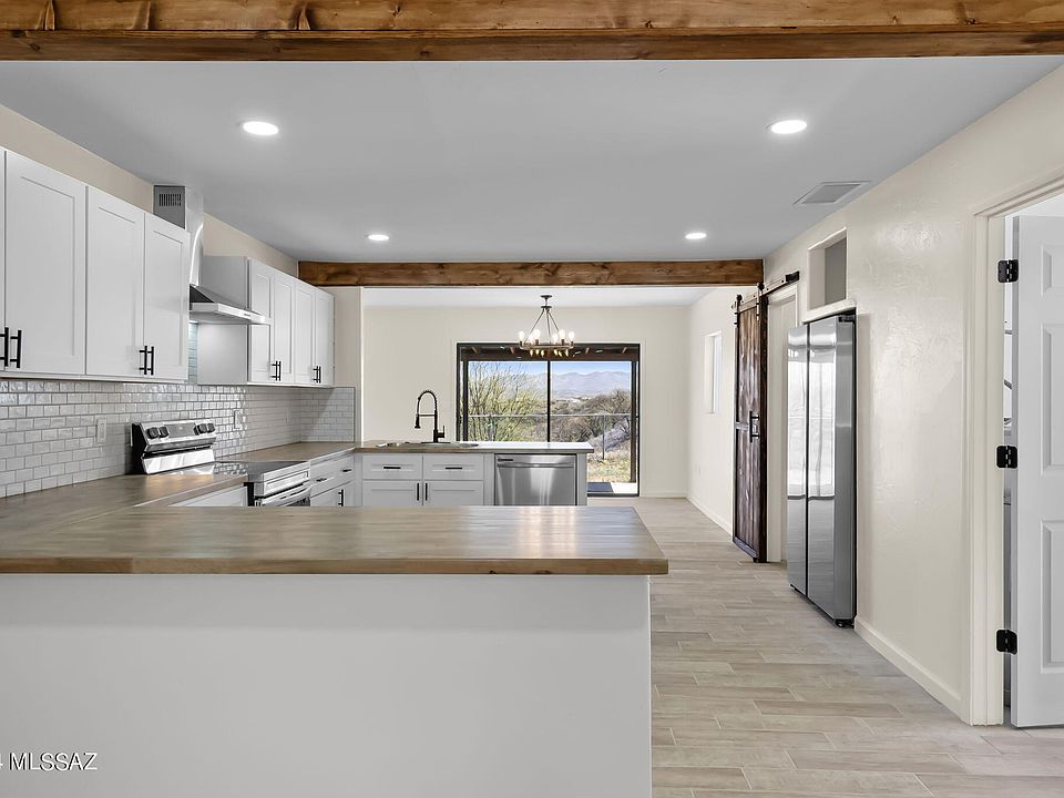 Welcome to this beautifully remodeled 3 bedroom 2 bath home located atop a picturesque hill, offering breathtaking panoramic mountain views. This modern ranch style home boasts three spacious bedrooms, two bathrooms, and an additional detached bonus room ideal for an office, fitness room, or extra space for guests when visiting. Situated on a spacious 2.6 acre lot. Conveniently located on the West side of Rio Rico just a few minutes from restaurants, banking, and your local grocery store.Owner/Agent