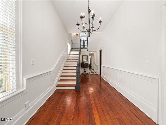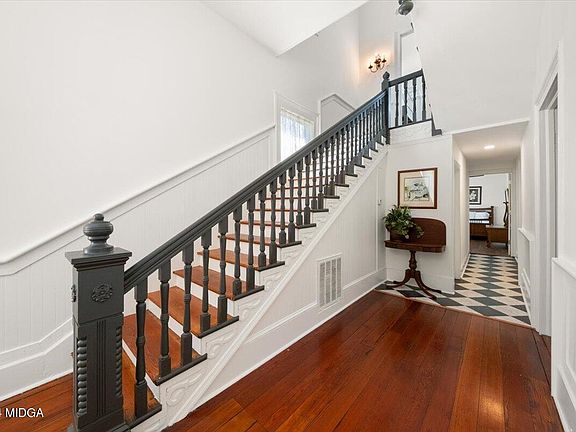 This beautiful completely renovated downtown Victorian home will grab your heart as you enter the foyer with fabulous original wood floors. The soaring ceilings and original tall windows flood the home with light. The living room and library make wonderful gathering areas. The original pocket doors add to the charm. A spacious dining room leads to a gorgeous kitchen with lovely white cabinets, quartz counter tops, new stainless appliances and all new lighting. In addition downstairs is a remodeled, updated bath and a bedroom with walk in closet. The second floor has a new laundry room complete with a sink and additional cabinets with a washer/dryer that remain. 2 large bedrooms and another completely renovated bath are also on the second floor. The house is furnished and most pieces are available to purchase. The front porch with a swing is the perfect place to end your day. The location is convenient to Mercer, Navicent, The Children's Hospital and all the opportunities found downtown.