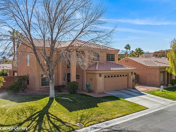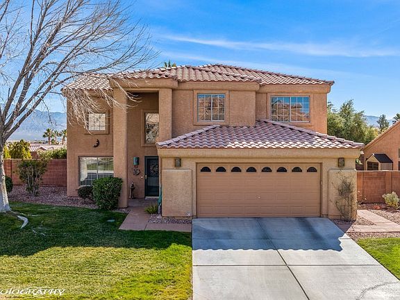 MOTIVATED SELLER in the Gated Community of Copper Bluffs. Located on a quiet cul-de-sac. This spacious two story home has remarkable views of the mountains from the upstairs balcony (east facing ). Entryway opens up to high vaulted ceilings with large picture windows in the living room. Kitchen offers cabinets that have been repainted, stainless steel appliances, backsplash that makes the kitchen pop with color and a kitchen bar with seating for two for that quick morning breakfast. Kitchen is open to the family room that has a door out to the covered back patio that extends the entire length of the backside of the home - making this so convenient for bbq's and entertaining family and friends. Half bath off kitchen. This oversized lot has a spacious fully fenced block wall. Second level offers main bedroom, two guest bedrooms. Main bathroom has been stylishly updated with new cabinets, new sinks and new lighting. Guest bathroom has new tiled walk-in shower. Den area on 2nd level could also be made into a 4th bedroom. HOA offers use of the Mesquite Vistas Sports Center: swimming pool, hot tub, pickleball - tennis courts and workout facility.