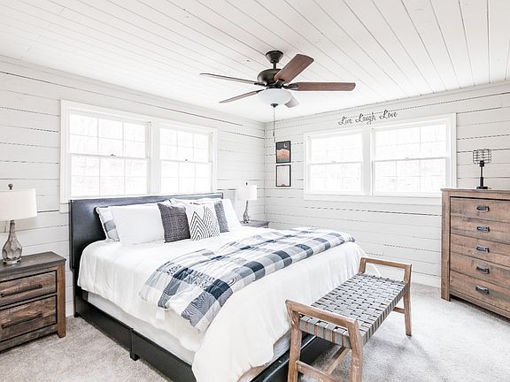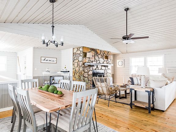 Come enjoy this newly renovated true log cabin sitting on 2.74 acres on HEMPTOWN Creek. Enjoy fishing for Rainbow trout, Common carp & Largemouth bass on your own stretch of this creek feeding to the Toccoa River system. Open concept w/ tons of natural light & farmhouse feel. 3 bedrooms have ensuite bathrooms w/tile showers. 2 bedrooms on main level. Kitchen features large granite counter workspace, plenty of cabinets, SS appliances & pantry. Spacious living area w/ wood burning fp and separate area for dining table. Oversized back porch with water views. Wide easily accessible path to water. Large flat area at creek perfect for fire pitting nites with the sounds of the creek & easy water access. Large utility/laundry room. Large shed on property and easy access circular drive. Ability to connect to public water is available if desired.