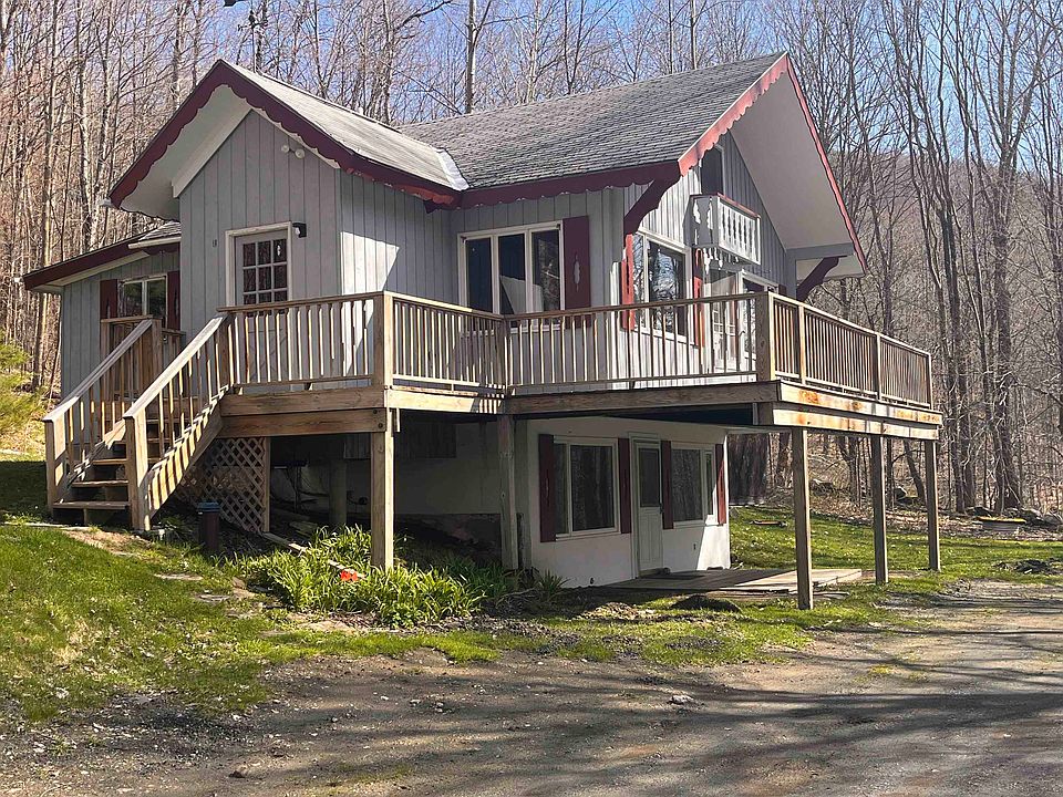 Spring is here and this fabulous home has just returned to the market. This home is located a mile up the road from Warren Village with a cozy open layout, southern exposure and mountain views. This charming home is perfect for those seeking a simpler way of life with its cozy fireplace and vintage details throughout. Outside there is a large area lined with stone walls and Maple trees allowing the outside experience you are looking for and completing the charm to this home. Currently this home is set up as a duplex; the upstairs has a large open layout with hardwood floors, great views of the mountains to the east, a charming fireplace, 2 bedrooms, a recently remodeled bathroom, a small kitchen area, a large open loft area and access to a deck for when you want to be outside. Downstairs you will find a 2-bedroom, 1 bathroom space with and an open layout which is perfect for when you have overflow guests or an added rental income. This home is being sold as-is