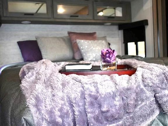 Tiny Slice of Heaven is a RV located in a RV/Tiny home community. It is a 1 bedroom/1bathroom RV that sleeps 6. It is completely furnished with king bed with memory foam padding. The living room has a comfortable couch that lets out into a comfortable bed. The reclining chairs are plush and gives you the best view of TV and outside to the lake that you can see from its huge windows. The kitchen has plenty of cabinet space. The dining area is perfect for a family of 4. Waterside is conveniently located to all the best that Blueridge has to offer. Exploring, Shopping, Dinning, Hiking, Kayaking, & Lake Blueridge Fishing is all just a few miles from the Waterside Community! While staying at Waterside you will have access to our resort style amenities including: Seasonal Community Pool, Hot Tub, Golf Cart Rentals, Fishing, Disc Golf, Basketball, GaGa Ball Pit, Laundry Facility, Bath House, Clubhouse Lounge Area, Waterfront Pavilion, 4 Large Waterfront Community Firepits. No smoking. Small dogs welcome (2 max) Renter responsible for utilities, and propane refill.