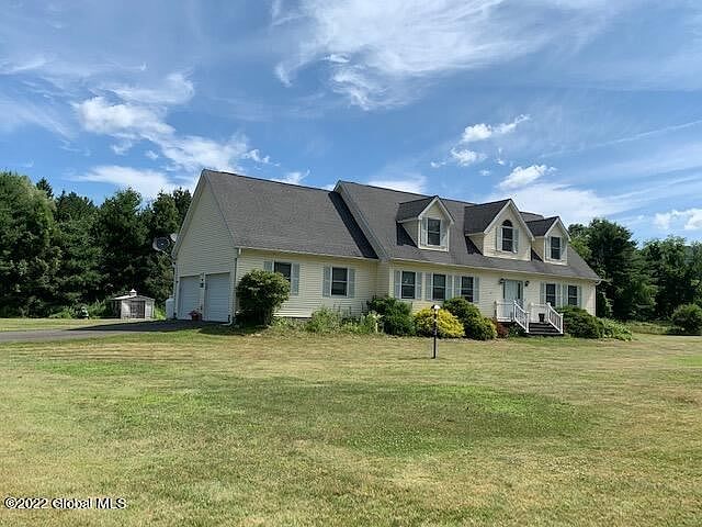 Amazing and spacious open concept living in this 4 Bedroom, 2.5 bath Cape on 1.6 acres located in a beautiful area. Open Kitchen/Dining/Living Room, first floor Primary Bedroom and full Bath plus a half Bath and Laundry Room. Second floor has 2 Bedrooms with large walk-in closets, full Bath, Den/Office/Play area and a large Bonus Room over the Garage. 18 years young, hardwood floors, central air, central vac, whole house generator, finished basement (bar and pool table do not stay) and a beautiful yard. Close to skiing and major highways.