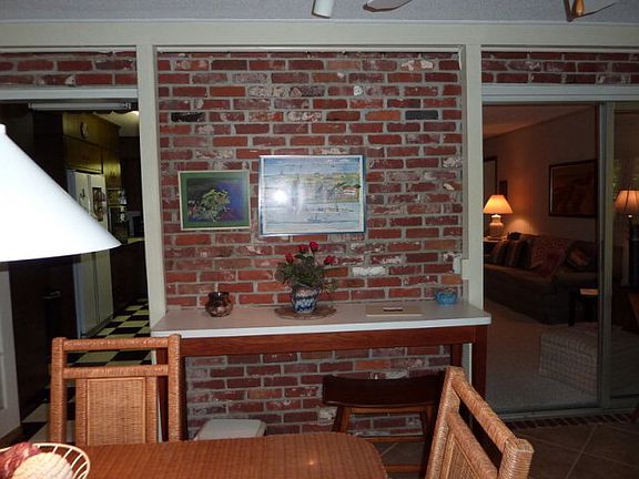 Last house on the left on N Beachview Dr. Backs up to the woods. Well cared for brick ranch. Roof is only 3 yrs old. 2 car garage, covered patio, 3 full baths, large master bedroom with walk in closet and full bath, 2 other bedrooms, family room, living room with fireplace and built in bookcases, open kitchen. There is a large tiled Jekyll Room across the back of the house with windows looking out to the wooded area behind the house.