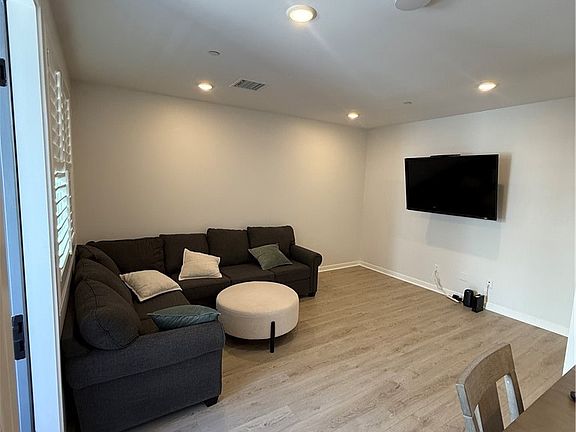 Built in 2022, this modern tri-level condominium offers 3 bedrooms and 2.5 bathrooms with an open-concept design. The kitchen features white cabinets, quartz countertops, and opens to a private balcony perfect for barbecuing and enjoying the view. 2 attached tandem car garage with epoxy flooring. EV ready charging. Solar included and Wifi included. All rooms with ceiling fans. Luxury vinyl plank flooring. Home is partially furnished with sofa, dining table, and a 50-inch TV. Washer, dryer, and refrigerator included. Walking distance to Ontario Mills, Toyota Arena, shopping centers, target, kohl's, and restaurants. Conveniently located just 4 minutes from Ontario International Airport. Close to freeway 10, 210 and 60. Turn key!!