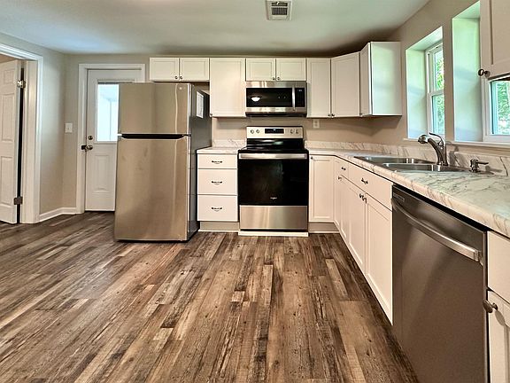 Beautiful newly renovated home. The perfect mixture between modern and farmhouse. Move in ready 2 bedroom, 1 bath home nestled on a tree shaded lot. This freshly updated cottage-style home features a crisp white exterior with rich wood accents, a covered front porch for relaxing. Bright and open living area with luxury vinyl plank flooring, neutral tones and charming touches like decorative white brick fireplaces. The kitchen shines with stainless steel appliances, white shaker-style cabinets and marble-look countertopsâ€â€offering both function and style. Each bedroom is filled with natural light. Enjoy peace of mind with recent updates through out the house and the convenience of a central location just minutes from town. Whether you are first time buyer, downsizing, or looking for a solid investment-this home is a must-see. Schedule your showing today and fall in love with the charm and simplicity this home offers.