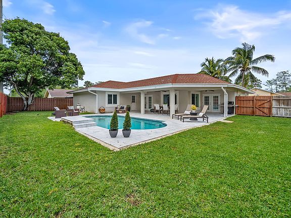 Spacious and well-maintained 4-bedroom, 2-bathroom pool home in the desirable Sugar Pond neighborhood, zoned for Binks Elementary School. This property features an updated kitchen with granite countertops and stainless steel appliances, beautifully renovated bathrooms, and ceramic tile floors throughout. Enjoy peace of mind with impact glass windows and a fully fenced backyard, perfect for privacy and outdoor fun. Additional updates include a totally upgraded backyard area with a gorgeous pool with complete privacy - a perfect outdoor oasis! Roof replacement in approximately 2013. No HOA and great Wellington schools!