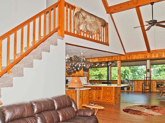 Rustic country cabin with expansive Mountain and Lake views at the top of Smokerise with TWO acres! This spacious cabin has three levels, with a bedroom & bath on each level, the open floor plan offers a huge family/dining room that is surrounded by a wall of windows to take in the views. The great room has a beamed ceiling & stone fireplace with a "buck stove " insert. The large kitchen has plenty of cabinets & counter space, a basement garage plus a covered carport area. Extensive remodeling with new floor coverings, plumbing, paint, roof, septic system and more. The home sits on 1 acre, plus a separate adjoining 1 acre lot comes with this home! Virtual tour coming soon.