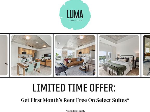 About**Limited-Time Offer: Move In Today & Get Your First Month Rent-Free On Select Suites. Contact Us For Details.**Welcome to Luma; a 9-storey boutique rental community bringing 168 premium residences to Elmvale Acres. Put down roots in a community built on the best of yesterday and the promise of tomorrow, where bright, contemporary design sits beneath a canopy of mature trees, and quiet side streets stretch towards bustling downtown Ottawa. Luma is 5-minutes from Children's Hospital of Eastern Ontario (CHEO) & The Ottawa Hospital General Campus.Enjoy amenities that benefit your unique sense of play. An impossibly inviting lounge, a beautifully designed, communal family-style dining room, a cozy library, a state-of-the-art fitness centre, a mindful yoga retreat and even a dog spa. These aren't the local hot spots lining a nearby street, they're your amenities.Enjoy the proximity of downtown Ottawa without the congestion. Explore exciting retail and entertainment at your doorstep. Live your dream without sacrificing your lifestyle. This is Luma.Community AmenitiesElevatorsSecurity onsiteGuest SuiteEV Charging StationStorage SpaceTerraceCertified Rental BuildingOn-Site Professional ManagementSuite AmenitiesBalconies