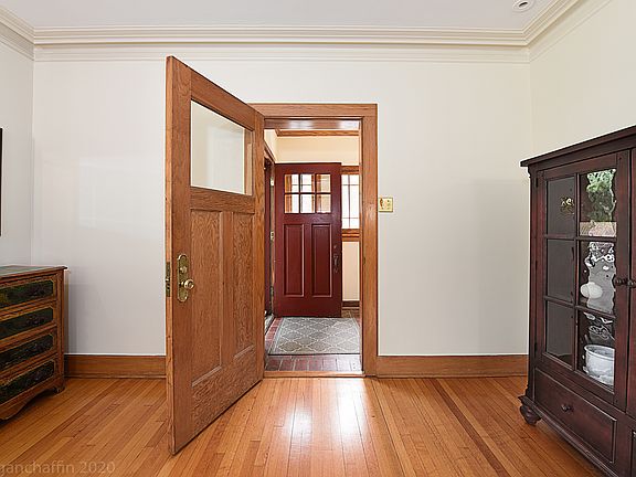 Picture perfect in-town living. 4BR x 3BA with deep yard and perfect location - close to everything. Spacious formal rooms and many separate family spaces on all 3 levels. First floor office AND first floor bedroom / full bath provide remarkable flexibility and functionality. Newer eat-in kitchen with island. Master suite with private sitting room. All baths have been renovated. The closets are all organized and generous in scale. Lower level includes more storage, laundry room, exercise area and finished rec room. Grow into this home as your family life expands and contracts. Deep, landscaped yard with patio for entertaining. Extra large 2 car detached garage with bonus storage above.