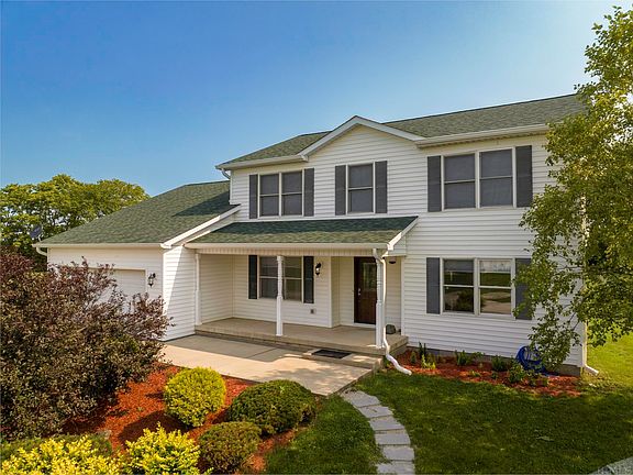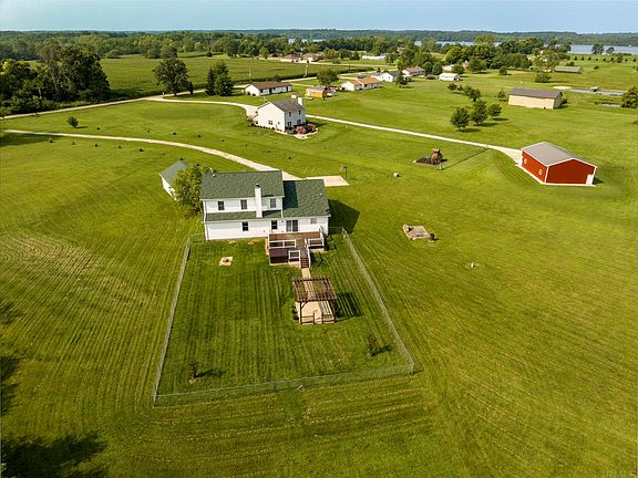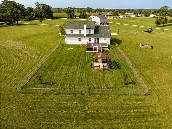 Located within 1/4 mile of Prairie Creek Reservoir this 2 story home built in 2005 is situated on 4 acres on a long lane lined with Blue Spruce. Offering nearly 3000 Sq. ft, 5 BR 2.5 bath home with spacious Great Room with Brick Fireplace opens to the large updated kitchen with newer stainless appliances, granite counter tops plus island with Breakfast Bar (Bar Stools remain.) Sliding doors off the GR open to a spacious deck and Pergola that is GREAT for entertaining. Separate DR and/or office/den plus a large MBR suite on the first floor with large WIC, bath with double vanity sinks, jet tub and separate shower. The first floor is completed with the laundry room and 1/2 bath. There are 4 additional large BRS each with WIC's on the second floor plus a 4 piece bath. There is a 2 car attached garage plus a second 30' X 24' detached garage built in 2020. The 4 acre lot offers a fenced area perfect for children and/or pets plus the back of lot bordered with a woods!! Updates include new interior painting, new laminate flooring on the first floor and new carpet in all upstairs BR's. Roof new in 2020. IMMEDIATE POSSESSION!!! Septic is located on E side of house while well is located on the West side of house. Both in back of house.