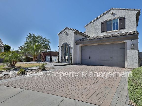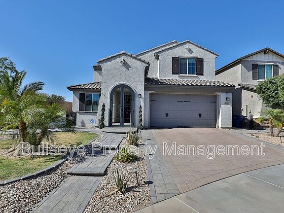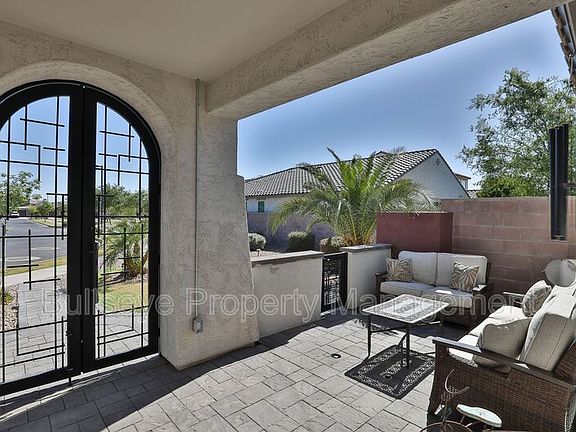 Marvelous home in the Torino in eastmark! Conveniently located off the 24 freeway, boasts 5 bedrooms and 4.5 bathrooms, and an office space. Tile flooring downstairs and the upstairs is carpeted. 20 foot ceilings, incredible custom iron doors, upgraded 16' kitchen island with waterfall quarts. The kitchen has Stainless steel appliances, including a gas range, a lovely farmhouse sink, along with Alkaline drinking water faucet, and plenty of space for storage. This gorgeous backyard comes with a pergola, built in fire pit, pool and spa with fire elements and 2 waterfalls. 100% privacy with no neighbors behind. There is also a soft water filter for all the water in the home, an in-house vacuum system, custom picture spot lighting, and a garage with Epoxy flooring and tons of storage. Community pool, spa and gym as well! Ricoh 360 virtual tour Terms Renters Insurance required $105 monthly resident benefit package processing fee (inlcudes bimonthly hvac filter install) one time $300 admin fee Pets upon approval, call first Amenities: community pool
