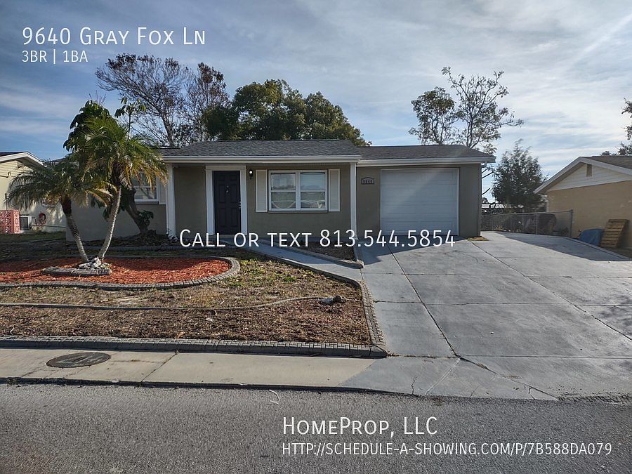 This 1100 square foot single family home has 3 bedrooms and 1.0 bathrooms. This home is located at 9640 Gray Fox Ln, Port Richey, FL 34668.