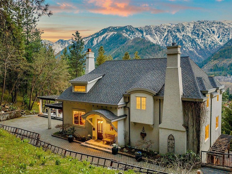Custom European Mountain inspired home /5 bedrooms and 3.5 baths built on a secluded 1.26 acres. Sophisticatedly designed taking advantage of the gorgeous views of the Bavarian Village and Mountains throughout the home. Main floor offers two living areas with two gas fireplaces & a large gourmet kitchen. A formal dining room & breakfast nook both of which focuses on the views. French doors lead to the outdoor living area. Ascend the staircase and you will find, a generously sized master suite complete with soaking tub, large walk-in shower & an oversized walk-in closet with built-ins. This level includes 3 other spacious bedrooms. Lower level provides 3rd living space, fireplace, bedroom, wine cellar & access to the two-car shop/garage.