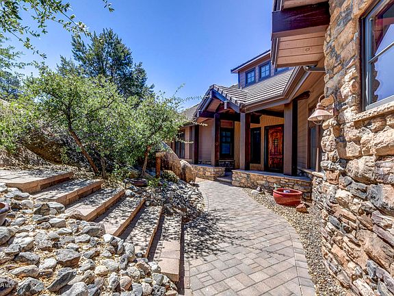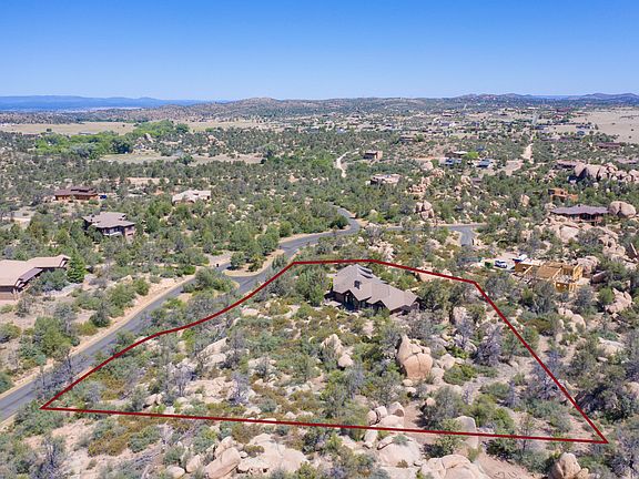 DISTINCTIVE CUSTOM HOME Situated among dramatic Boulders on 1.3 AC; in the premier, gated community of American Ranch in Prescott, AZ. With 4-Bdrms + Office, a 500 SF Loft and 3.5 baths, No expense was spared in quality finishes t/o. The exterior boast a concrete tile and seamless metal roof, oversized posts and beams, professional, terraced landscaping, outdoor fireplace and several patios for entertaining and enjoying the VIEWS! The great room offers a floor-to-ceiling stone fireplace and expansive windows to bring the outdoors in. Large Chef's Kitchen/Dining Rm and a luxurious master suite. Over $5 million in community amenities including an equestrian center w/stables and covered arena, large swimming pool, clubhouse, fitness center, stocked fishing pond and miles of riding trails.
