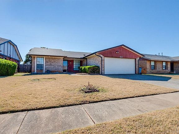 This lovely home sits on a quiet dead end street with a beautiful open floor plan. As you walk through the front door with a covered porch, you will enter through an entry way that opens up to the living room, dining room and kitchen. The primary bedroom and primary bathroom to the right. The other 2 secondary bedrooms are to the left plus the guest bathroom. The living room fireplace was converted to gas log. The Fridge Stays! The backyard is spacious and has a covered back patio. A 1 year home warranty w/hvac is included. ++ walking distance to the top notch Carl Albert Schools! Walking distance to several stores, just minutes from shopping/restaurants and the AFB.