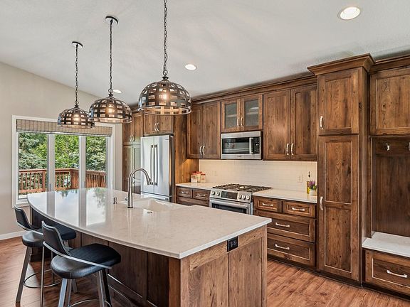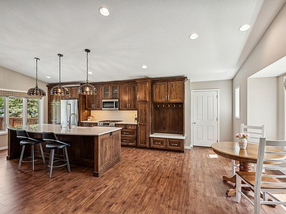 This stunning four-level home is ideally situated by Crystal Lake, offering a perfect blend of comfort and modern amenities. The spacious living room and kitchen feature vaulted ceiling, stone counters, hickory cabinets, soft close drawers, and a cozy fireplace. Updates include LVP flooring, stainless appliances, and a large center island with farmhouse sink. Upstairs, enjoy the roomy owner’s suite with private bathroom, while the lower levels offer a generous family room with a wet bar, additional bedrooms or offices, and access to a secluded backyard with a garden.
